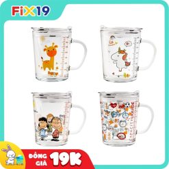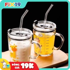 CỐC PHA SỮA THUỶ TINH CHIA VẠCH SIÊU TIỆN LỢI CÓ NẮP VÀ ỐNG HÚT CHO BÉ